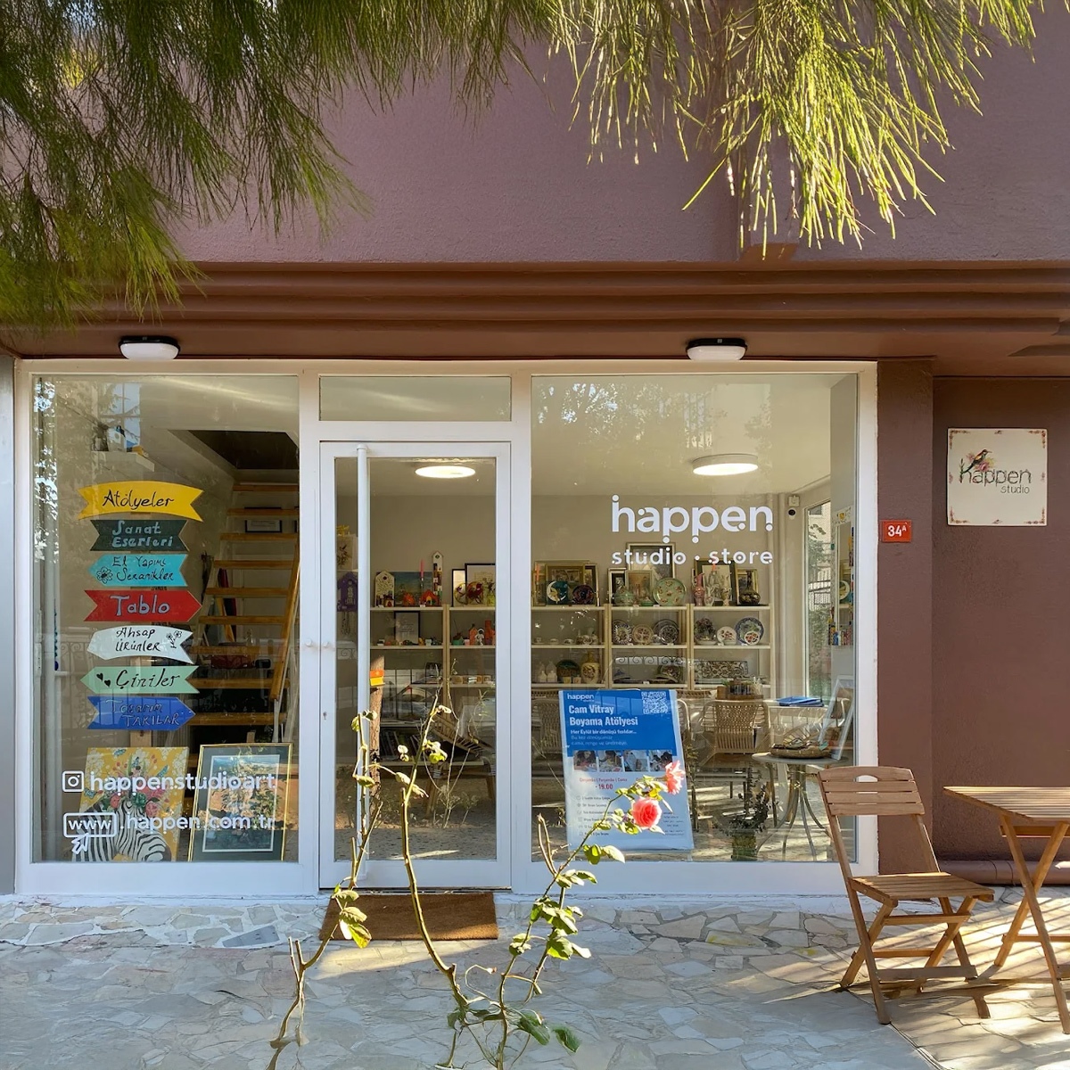 Happen Studio, yetişkinler ve çocuklar için sanat ve el işi atölyeleri düzenleyen bir üretim alanıdır. Cam vitray boyama, mozaik, mum ve terrazzo mumluk yapımı, zaman kapsülü gibi farklı atölyelerle katılımcılara deneyim odaklı çalışmalar sunar.